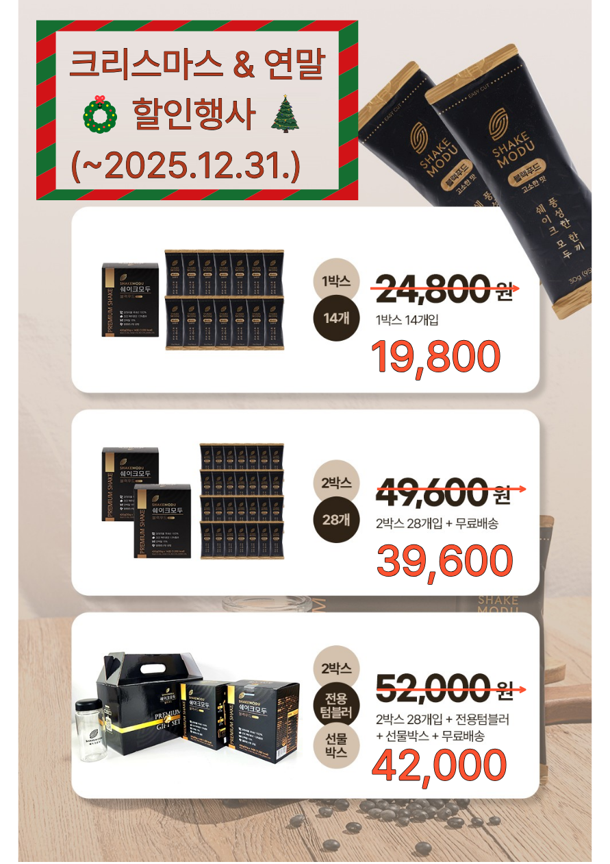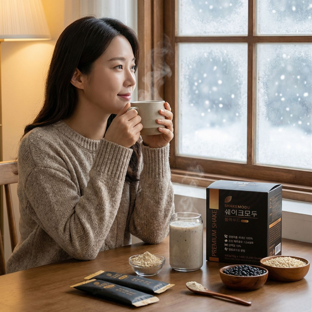 추운겨울 따듯한 쉐이크모두 한잔이면마음도 몸도 포근해집니다.국산 블랙푸드의 영양까지 가득 담아프리미엄 블랙푸드 선식 "쉐이크모두"