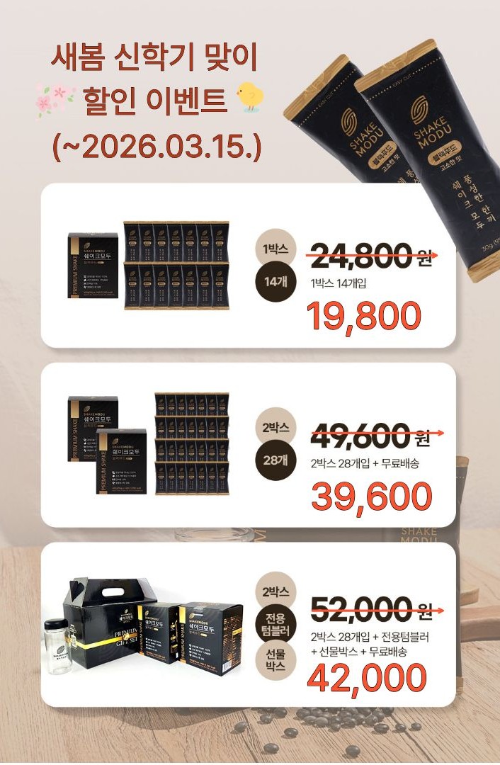 국산 블랙푸드의 영양까지 가득 담아프리미엄 블랙푸드 선식 "쉐이크모두"